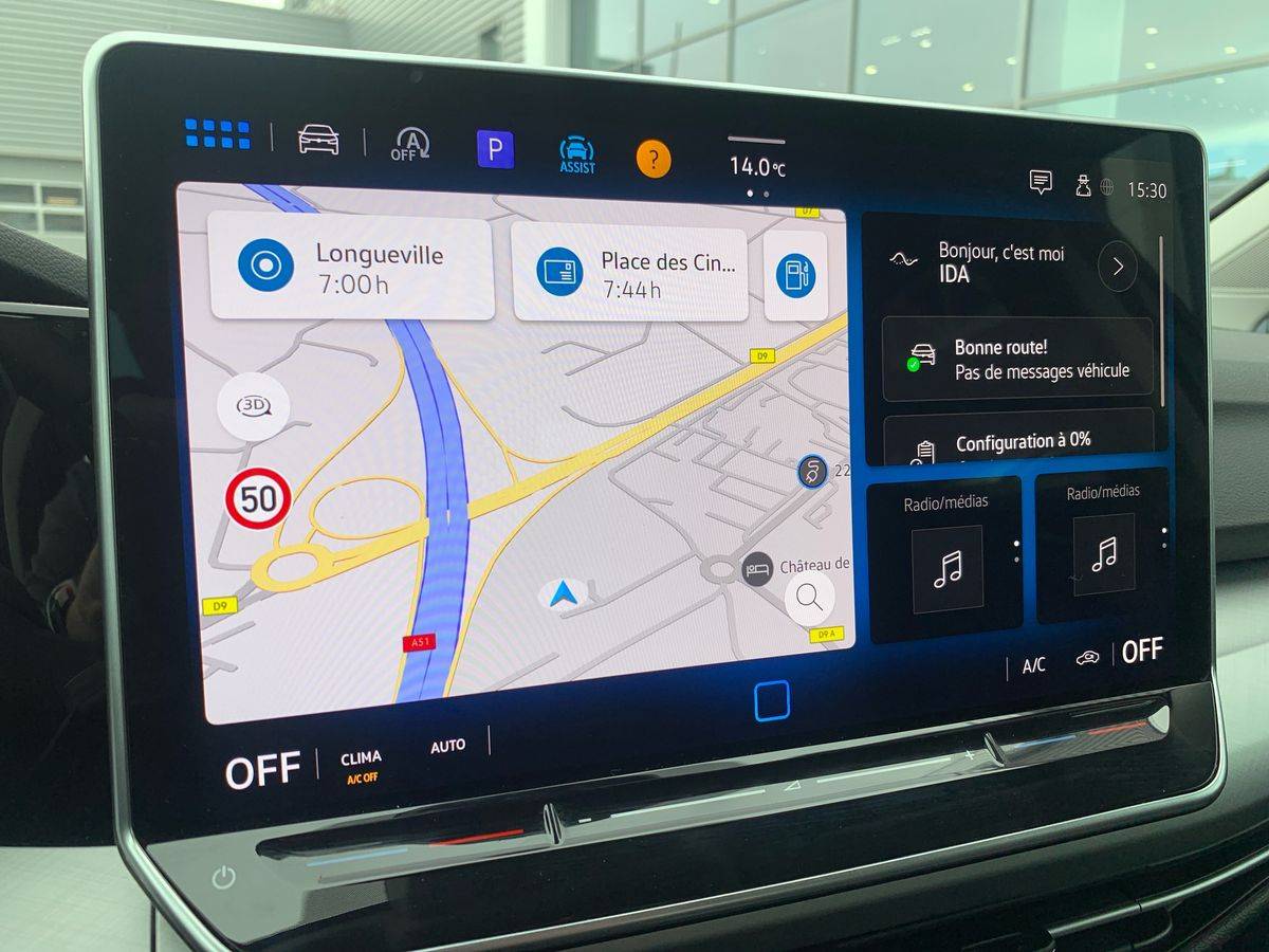 Système de Navigation & Infotainment "Discover" avec "Services de streaming et radio via Internet" via carte eSIM intégrée, Radio 7 HP et écran couleur tactile 12,9" avec projection de la cartographie dans l'écran du "Digital Cockpit Pro"