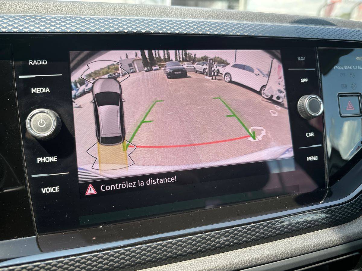 Rear view: - pllus qu'une caméra de recul, elle affiche des indications visuelles sur l'écran central pour faciliter les manoeuvres de recul et de stationnement