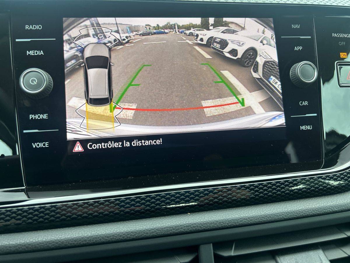 Rear view: - pllus qu'une caméra de recul, elle affiche des indications visuelles sur l'écran central pour faciliter les manoeuvres de recul et de stationnement