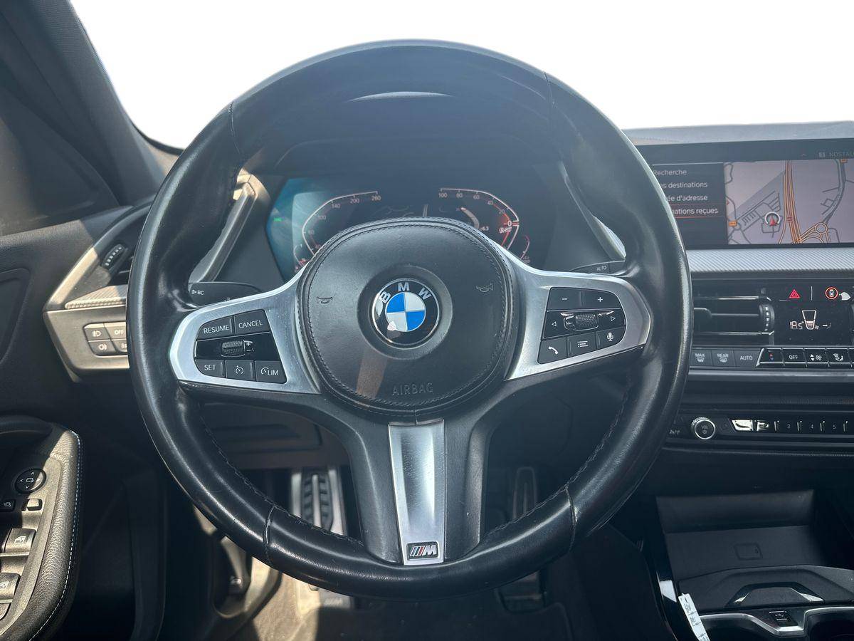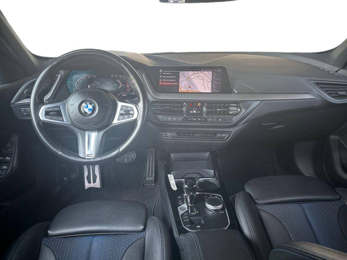 Volant M gainé cuir Trois branches, aplati en bas et marque à 12 heures en noir. Volant en cuir noir 'Walknappa' avec surpiqûres noires, inserts chrome nacré et repose-pouce dans le volant. Logo M sur la base du volant.