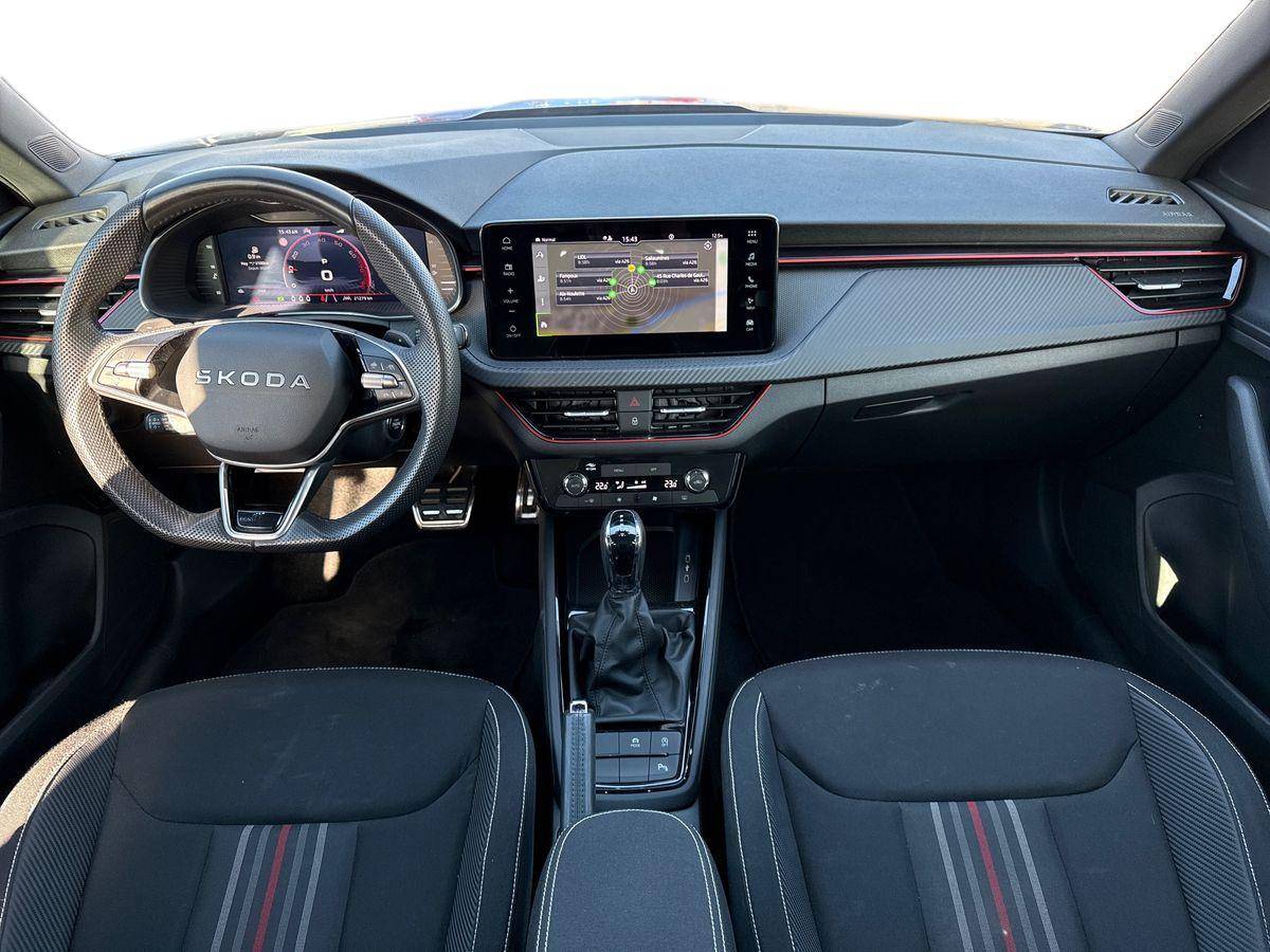 Insert décoratif sur la planche de bord effet Carbone avec liseré rouge et inserts de porte matériau synthétique effet carbone